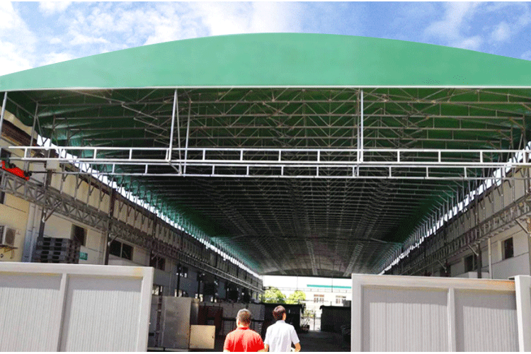 電動推拉雨篷可根據用戶要求隨意定製,並帶有,移動方便(biàn),收縮自如,遮陽擋雨效果好(hǎo)。